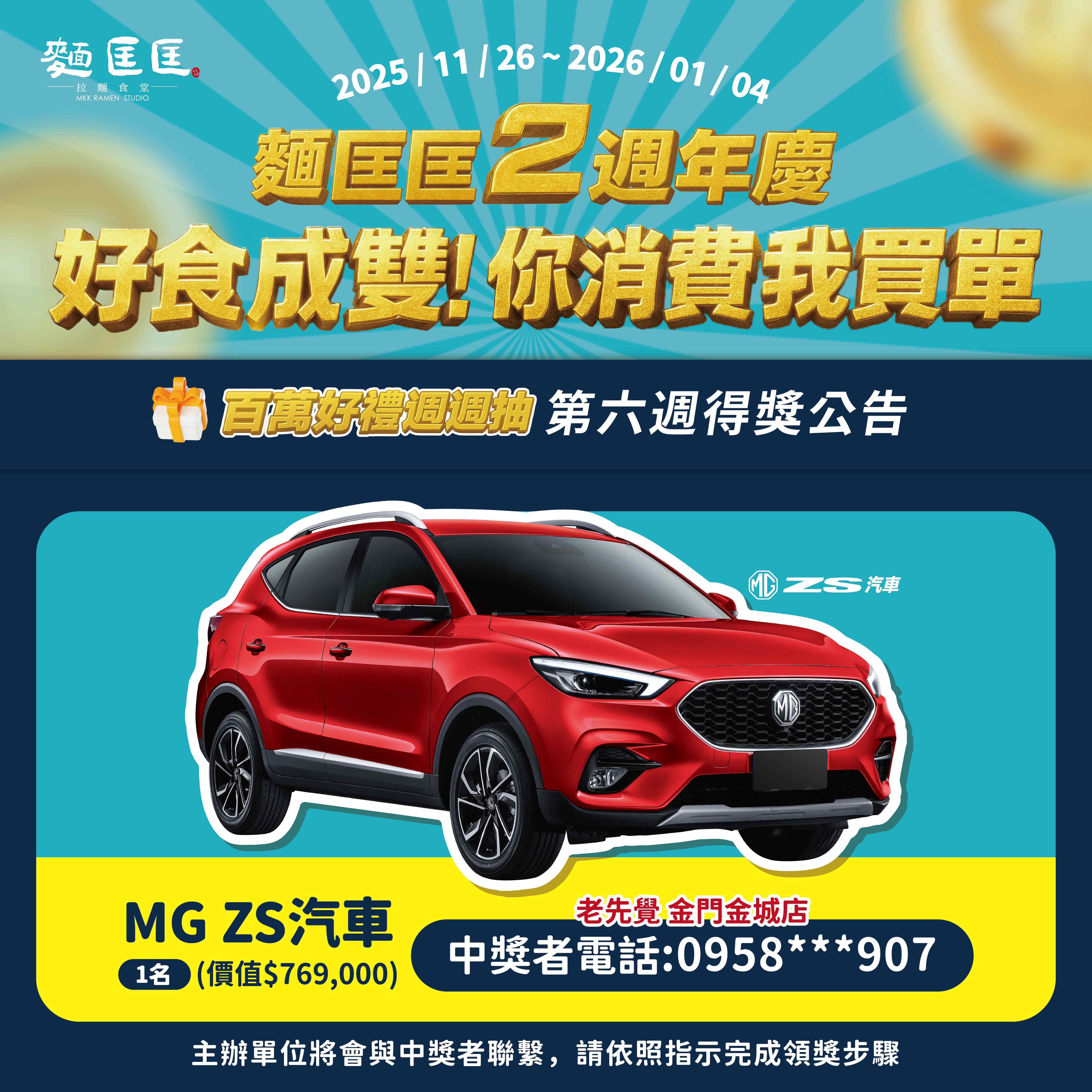 ✦ 抽獎日期:2025/12/03、2025/12/10、2025/12/17、2025/12/24、2025/12/31、2026/01/07,並公佈於麵匡匡官方社群。